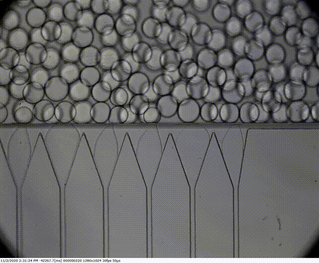 - 两种不混溶的流体被引入微流体设备:连续相(通常是油)和分散相(通常是水或水溶液)。