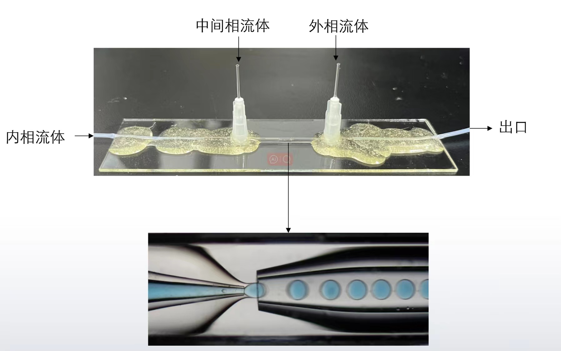 图1 微囊跑与微球加工的毛细管双乳液滴芯片